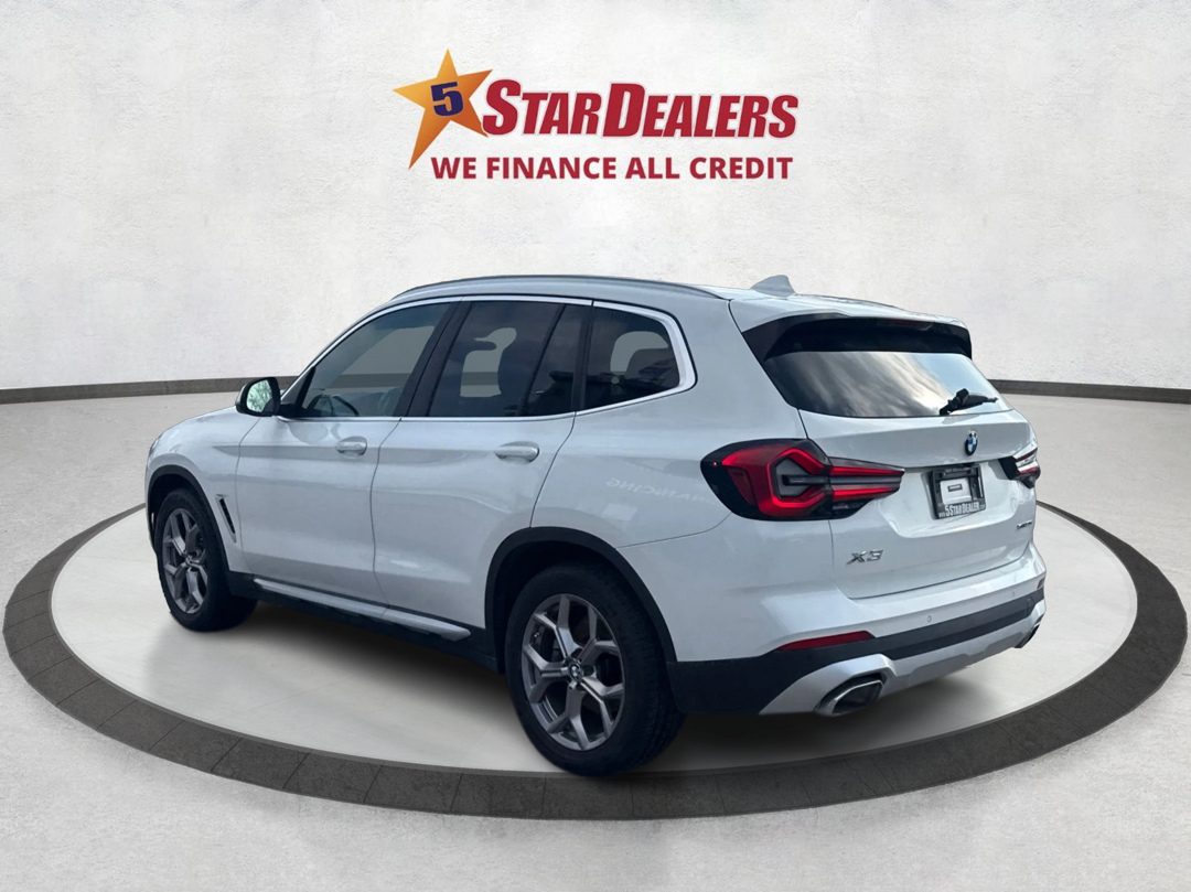 Every reasonable effort is made to ensure the accuracy of the information listed above. Vehicle pricing, incentives, options (including standard equipment), and technical specifications listed is for the 2022 BMW X3 NAV LEATHER CERTIFIED MINT WE FINANCE ALL CREDIT! may not match the exact vehicle displayed. Please confirm with a sales representative the accuracy of this information.Payment amounts presented are for illustrative purposes only and may not be available. The Estimated Finance Payment amount calculated is based on the variables entered, the price of the vehicle you entered, the term you select, the down payment you enter, the Annual Percentage Rate (APR) you select, and any net trade-in amount. The payment estimate displayed does not include taxes, title, license and/or registration fees. Payment amount is for illustrative purposes only. Actual prices may vary by Dealer. Please contact dealer for actual rates and more details.